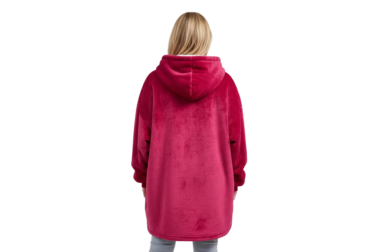 Our wearable blanket hoodie for men and women features a plush exterior, sherpa-lined interior, oversized fit, and front pocket. One size fits most—perfect for lounging, relaxing, and staying cozy all day.